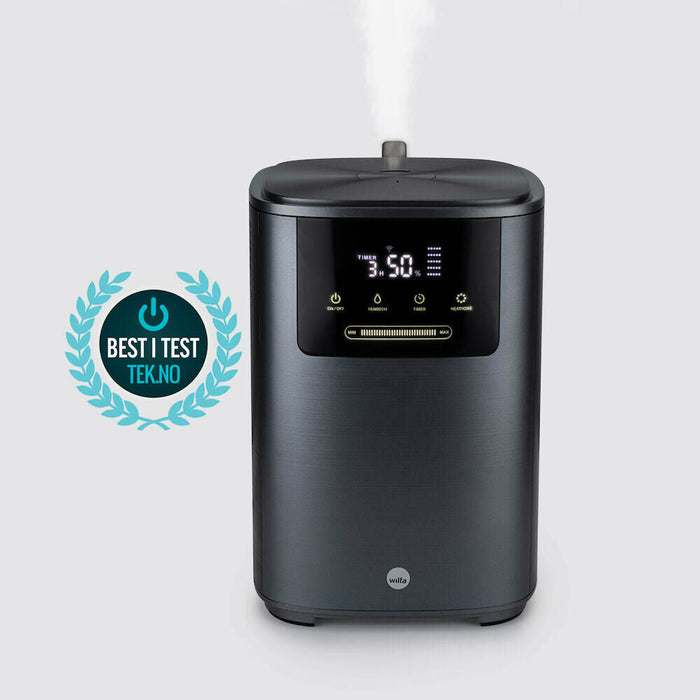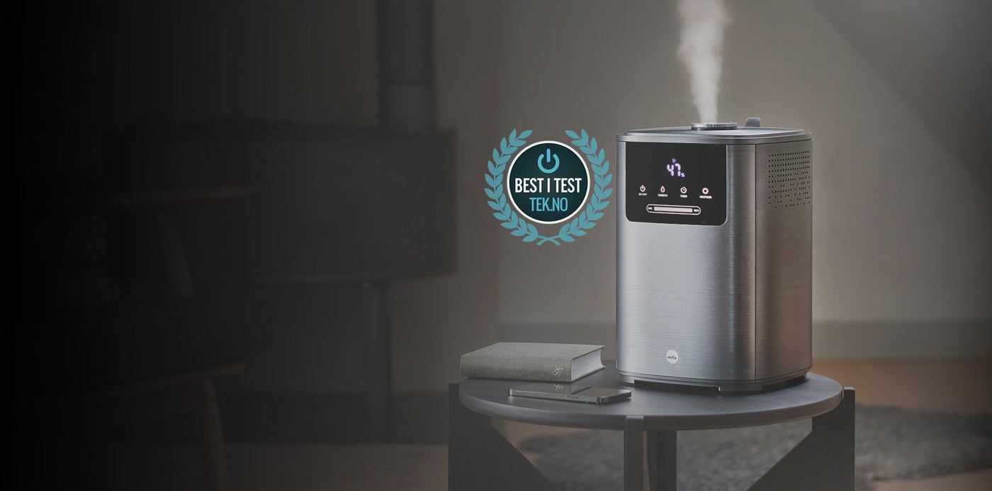 Våre luftfuktere er ultrasoniske. Det vil si at det er en metallskive som vibrerer med en ultrasonisk frekvens, som deler vannmolekylene og sender ut damp som enkelt absorberes som fukt i luften. Prosessen er miljøvennlig og stille samtidig som det muliggjør kald fukt hvorav du bl.a. slipper kondens på vinduene.